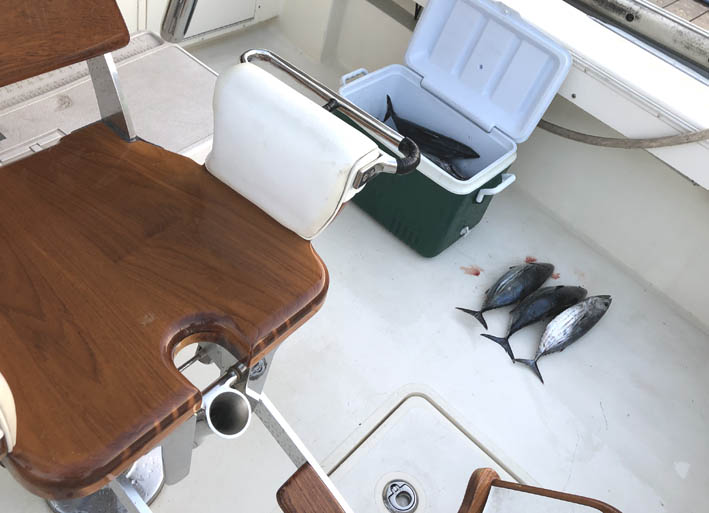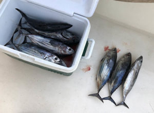 ここ数年は、僕が大好きな海で行っているオレカ主催のイベント。マリーナから花火大会を見たり、外洋へカジキを狙いに出航したりと、年に一度だけ客様と楽しむ機会を設けてきました。しかし残念ながら今年も台風の影響を受け、慣れない方をお連れできる海況にないことから中止に。ただ、せっかく船を出す準備をしたので、外洋は2―3m程度のうねりが入っているとの予報でしたが、漁になれたスタッフとリスクの少ないポイントを狙って出航。しかし外洋に出ると予報以上の波があり、早めの帰港となりましたが、それでも意地でカツオを何本か釣り上げました。10年ほど前であれば、カツオを釣るのは簡単でしたが今は魚が減っており、貴重な存在です。スタッフみんなで美味しくいただきました。感謝。